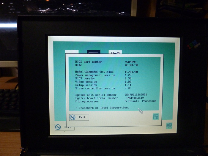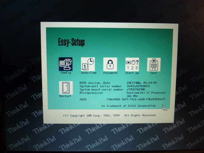 BIOS датируется 1998 годом, имеет вполне стандартный функционал Thinkpad'ов тех времен.
