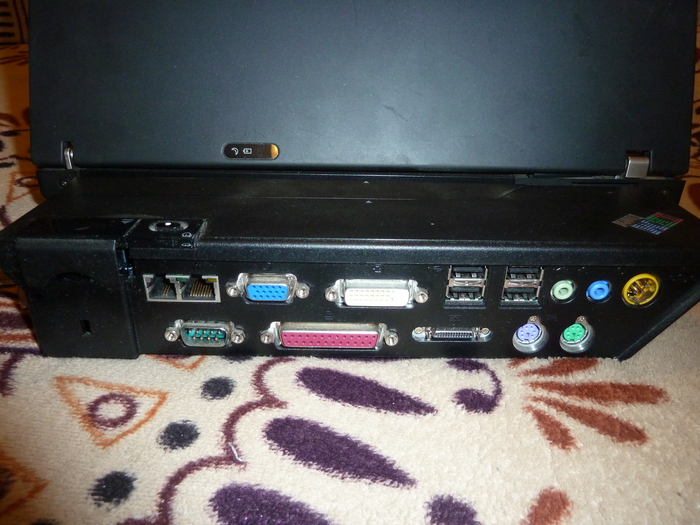 Стандартный набор портов, окно ИК порта, и необычный разъем питания. Через переходник работает без проблем)