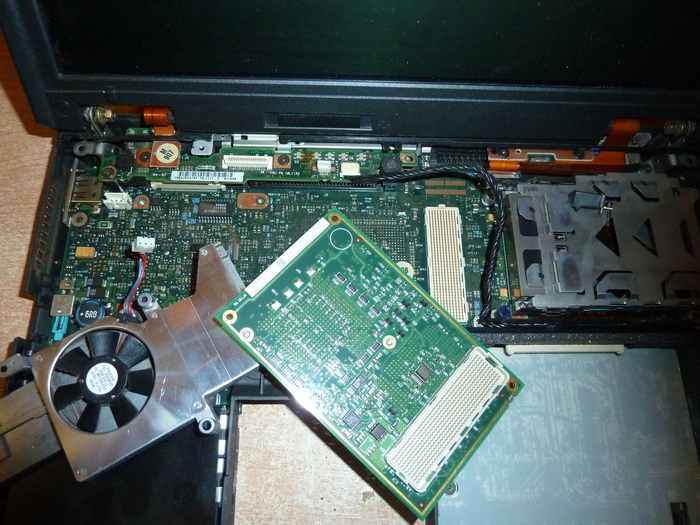 Вот такая необычная конструкция. "Материнская плата", если так можно ее назвать, находиться в широком большом модуле, и состоит из нескольких плат. Это можно увидеть здесь: https://hwmuseum.pp.ua/laptop/2220.html Я не хочу без особой надобности его разбирать. АКБ оживить не сумел(.