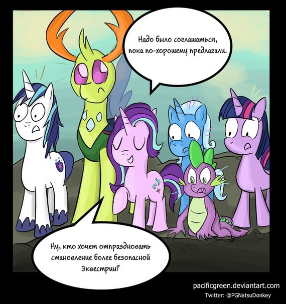 И война между двумя чудовищами продолжалась, приближая континент к гибели. Война на полно уничтожение врага, чего бы это ни стоило. Но вскоре пони поняли, что происходит и что будет, если эта война продолжится. Земля, которой они дорожили всю свою жизнь, превратится в необитаемую пустошь.