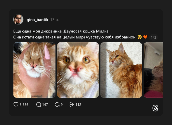 Двойной нос у кота - это редкая врожденная аномалия развития, при которой у животного формируется два полноценных носовых зеркала, часто сопровождающаяся расщелиной или другими дефектами морды. Такие кошки могут жить полноценной жизнью, хотя часто испытывают проблемы с дыханием, подобные «летучим мышам».
