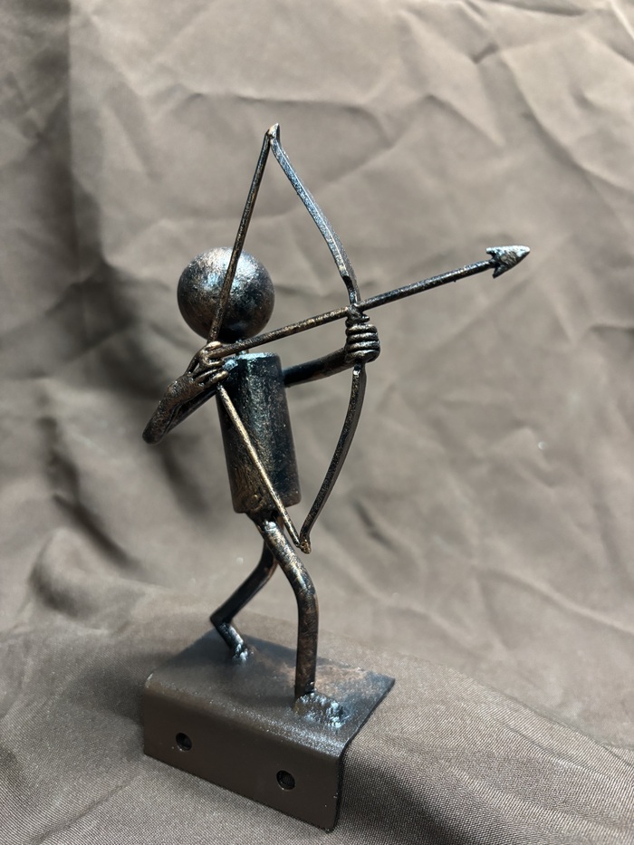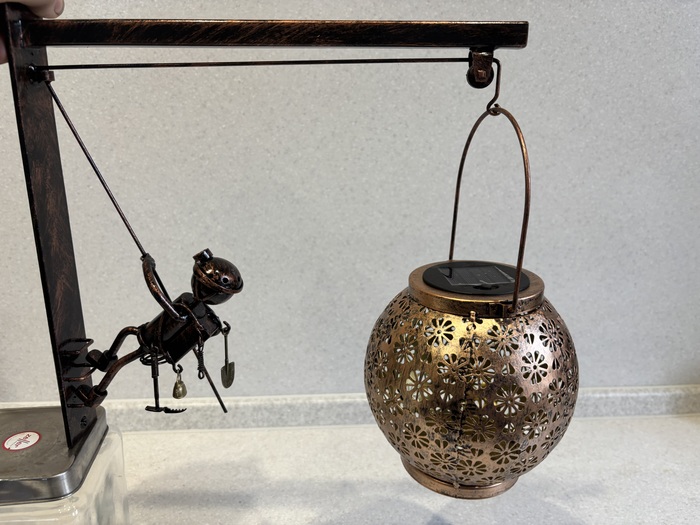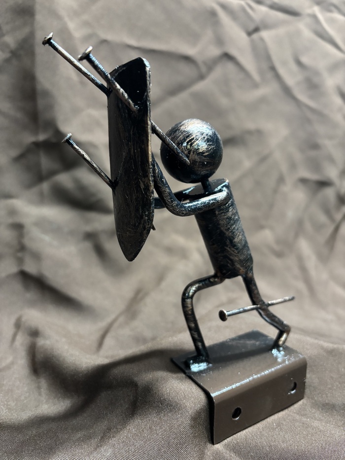 В интернете много всяких прикольных человечков с тельцем из арматуры с ножками и ручками из гвоздей. Делаются максимально просто а выглядят прикольно. Решил тоже понаделать разных. Ну оду поделку сделал как подарок на новый год. Тельце сделано из полдюймовой трубы. Ручки и ножки из проволоки 4 мм.Головы купил на озоне .Шар пустотелый 30мм.И саму лампу там же. Фигурки ростом примерно 10 см . Остальные фигурки прикручу на ворота. Будет прикольно смотреться. В планах ещё понаделать всяких разных.