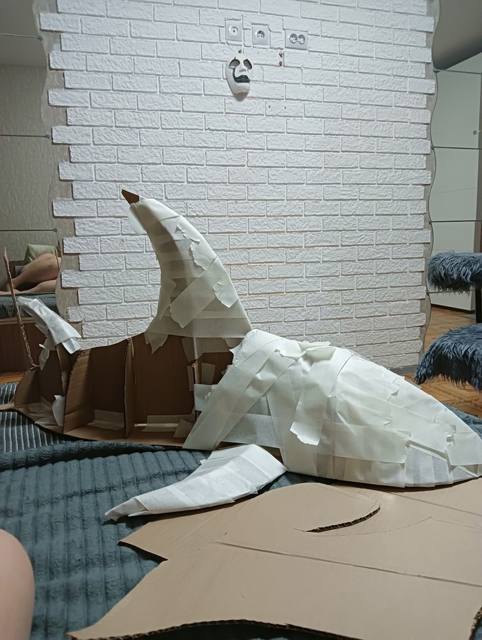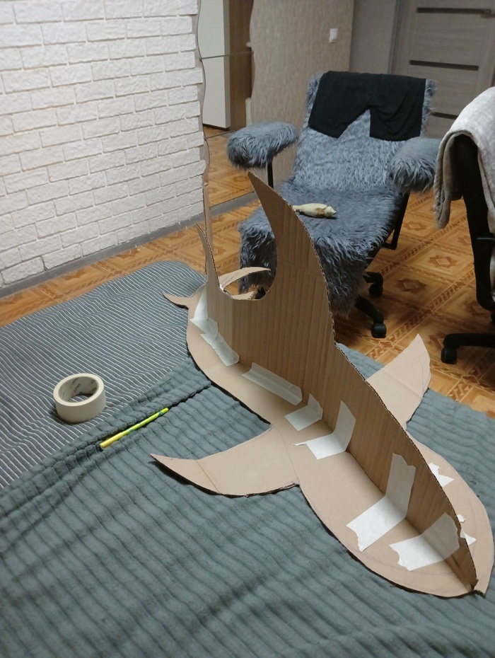 Начал делать акулу из картона