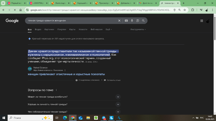Те мужчины, которые привлекают женщин- мужчины с темной триадой, чаще становятся начальниками там, где не надо больших мозгов.