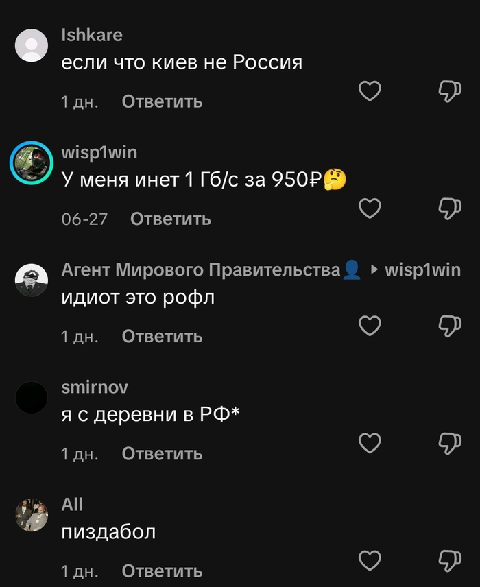 Оставил в одной замечательной соцсети комментарий о том, что у меня в регионе отсутствуют всякие блага и высокие цены на цифровые услуги. Типу отвратительного общественного транспорта в лице списанных ПАЗиков и дорогущего интернета (в моем регионе 300 Мбит - 900 рублей). Если что, речь идёт про Томск (кто не знает, это город в Западной Сибири, рядом с Новосибирском, с населением ~550к). Естественно, помимо упомянутых мной вещей есть еще сотни других минусов, которые никто никогда не исправит (отсутствие асфальта в ГОРОДЕ), но что меня очень удивило, так это то, что под моим блядским нытьём собралось ~500 комментариев, большинство из которых несли следующий смысл: я ебаный пиздабол без пруфов, и вообще я из Украины и никогда в России не был) Еще часть была от москвичей с их высирами "а у меня в Москве всё дешево, значит, ты врёшь и у тебя тоже дешево" - но ебаные пидорасы не понимают, что отличие регионов от Москвы в том, что в регионах отсутствует такая же конкуренция поставщиков и производителей, а также отсутствует грамотная инфраструктура и логистика, из-за чего даже цены на еду порой бывают выше московских при том, что зарплаты в 2–3 раза ниже - это я не затронул такую тему, что СВО-шники в массе своей разгоняют инфляцию в регионах сильнее, чем в Москве. Такие базовые и очевидные на первый взгляд вещи, но блядям не докажешь нихуя, хоть кидай данные с Росстата, МВД и так далее, верят только телевизору и слоганам "У нас всё хорошо, а там плохо".