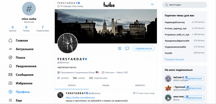 Регистрация в начале апреля. Мой первый пост 24 апреля - 8 лайков, 0 подписчиков. Можно поставить день рождения, но зачем? Кстати, в Ярусе тоже можно указать непосредственно в профиле. Не ссылки на другие площадки или что-то более ценное, а дату дня рождения. В мире, где есть тренд на сокрытие личных данных, зачем эта функция?