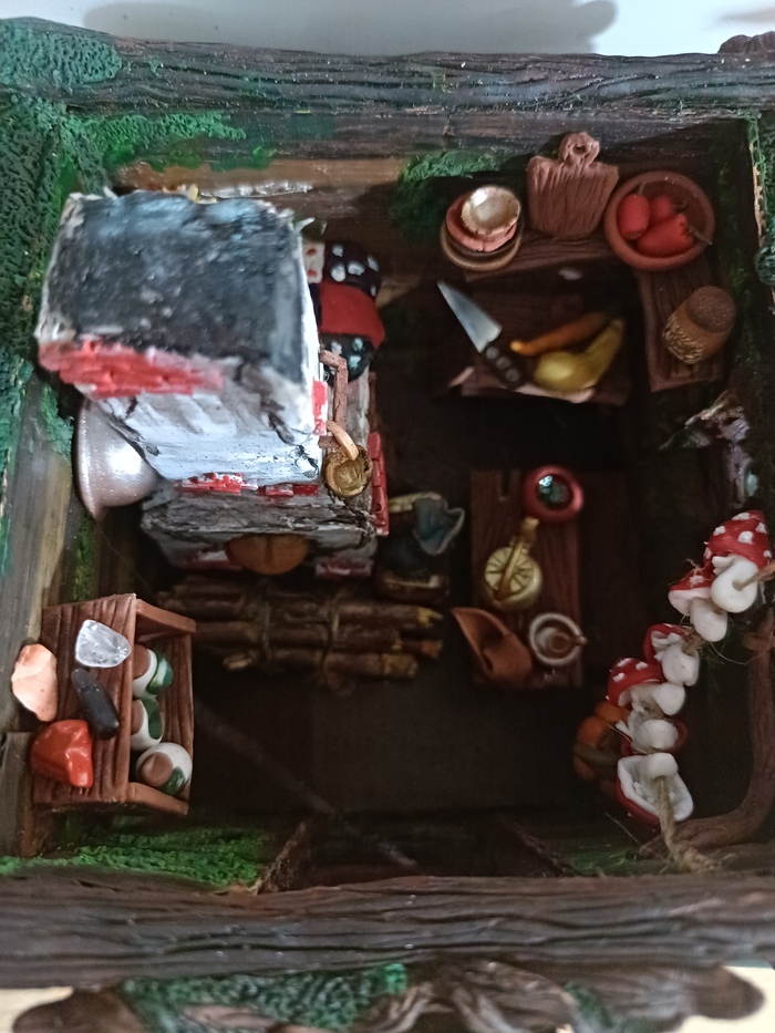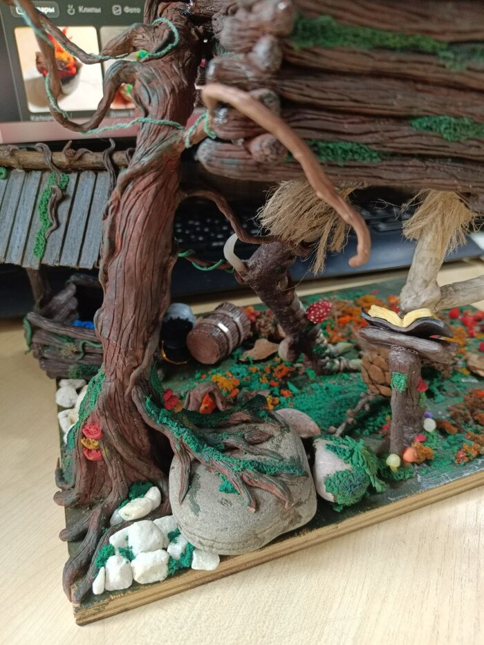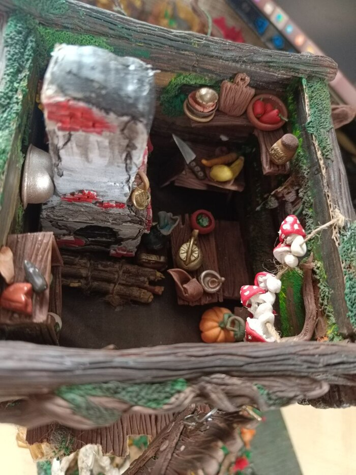 Материал: полимерная глина Fimo, Пластишка, акриловые краски, металлическая эмаль, лаки глянцевые и ультраматовые, стальная арматура разной толщины, переплетный картон, клей ПВА, бумага с липкой задней частью (забыл как называется, стикеры на колонке на принтере распечатал)