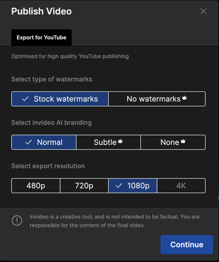 - Далее меня ждал сюрприз - бесплатно скачивается видео с водяным знаком, если вам нужно скачать видео без него, то будьте любезны выложить 20 $/мес -прям магическое число у всех нейронок, не заметили? )) Я на это забила, зато можно выбрать качество 1080p, что меня порадовало.