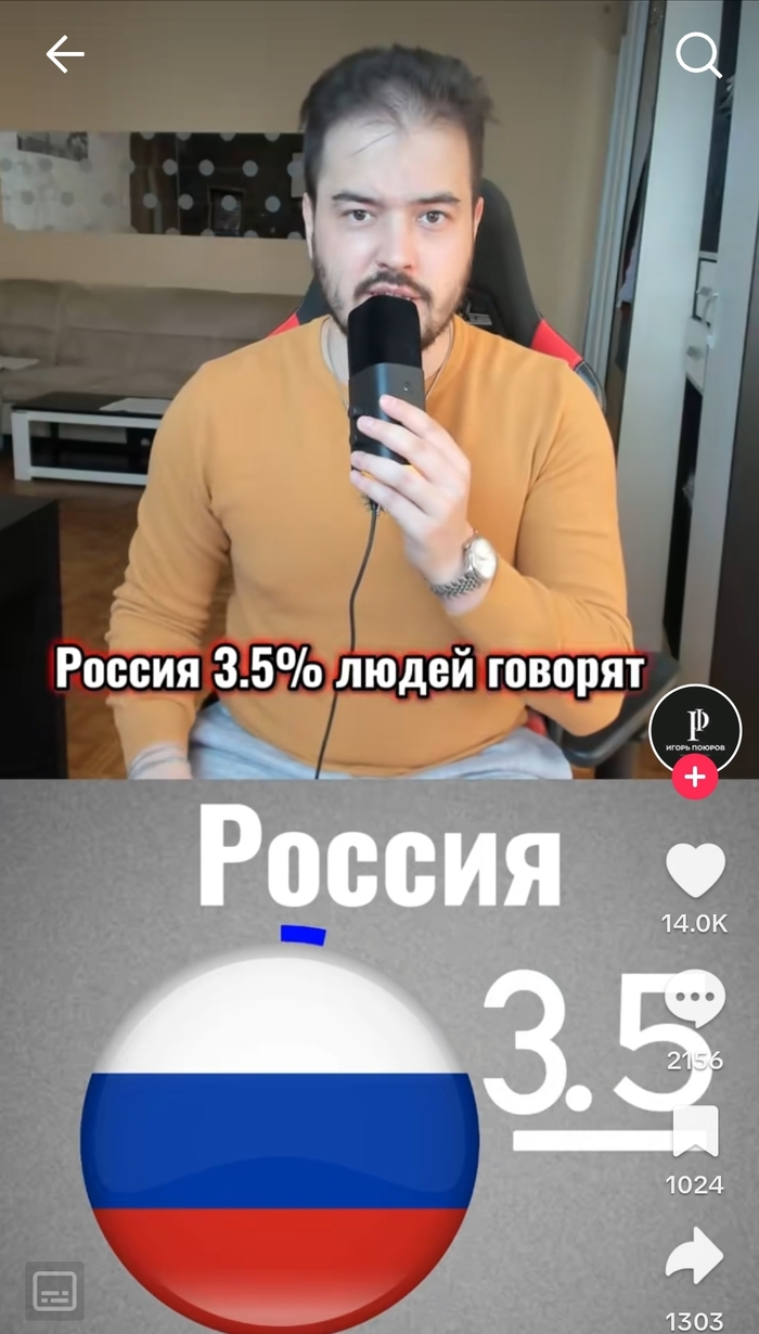 Какой-то пипоша в тик-токе выложил видео, в котором демонстрирует процент англоговорящих людей, согласно разным странам и РФ (3,5%). Откуда взял данные, как они собирались...в общем инфа поверь мне брат.