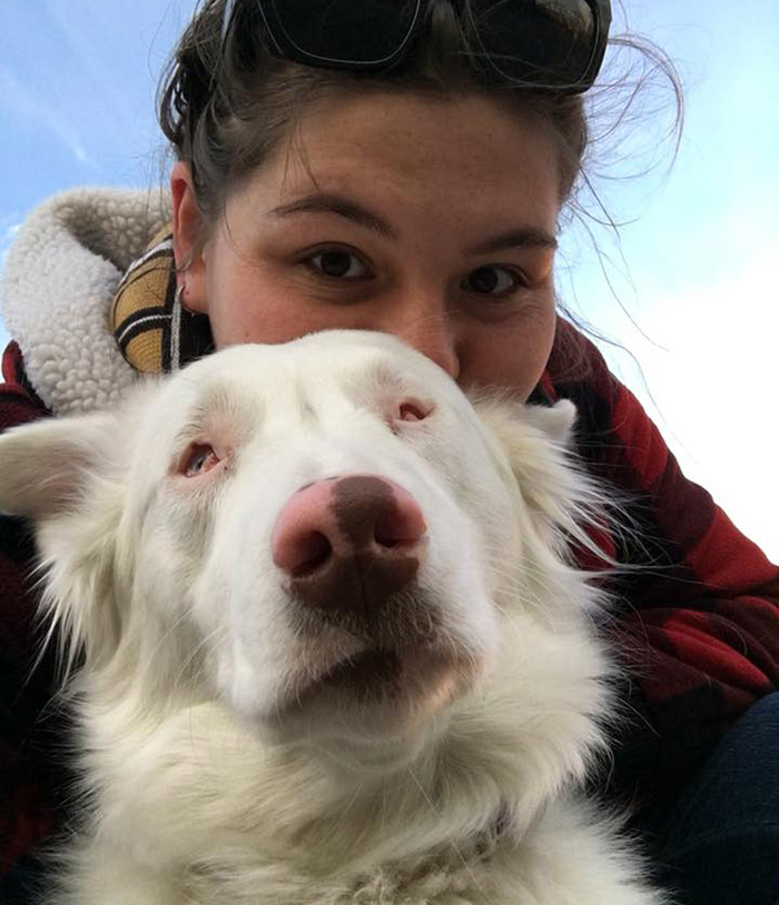 Битси живет у Хейден уже пять лет. Поначалу все домашние переживали, как будет вести себя и ориентироваться в пространстве щенок, у которого нет зрения и слуха.
