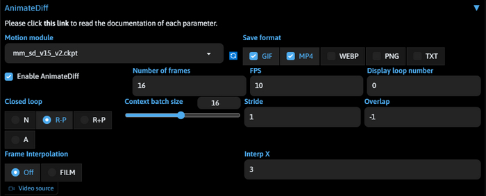Number of frames - сколько всего будем генерировать кадров, чем больше - тем дольше. К тому же более длинные ролики получаются "рваными". Оптимально 16.
