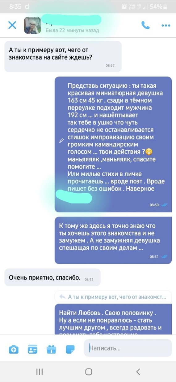 И вот сегодня снова сорвалась встреча (10 дней со дня знакомства)