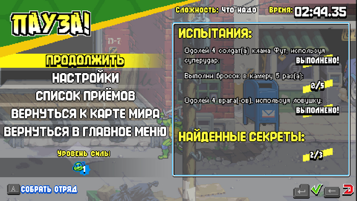 Играть, кстати, можно по разному. В Shredder's revenge есть два варианта игры.