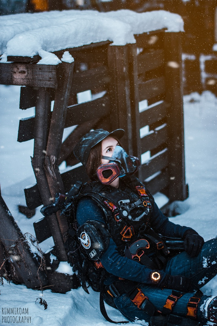 И, наконец, как оно выглядело на фотосете, после того, как мы добавили немного снега, грязи и весь остальной костюм: