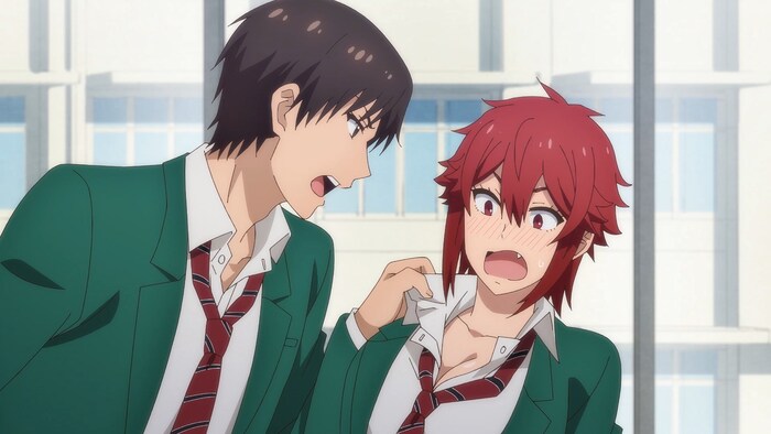 Что для главной героини важно? Важно получить взаимные чувства от своего друга детства. Как этого добиться? Конечно же попадая в смешные ситуации. Плюс ещё зрелищность это то как ведёт себя Тома. То она крутая каратистка, которая может кулаком под дых вырубить пацана, а то стесняшка, что беспокоится по удару по попе, или когда её хватают за воротничок. Но вишенка на торте не в этом.