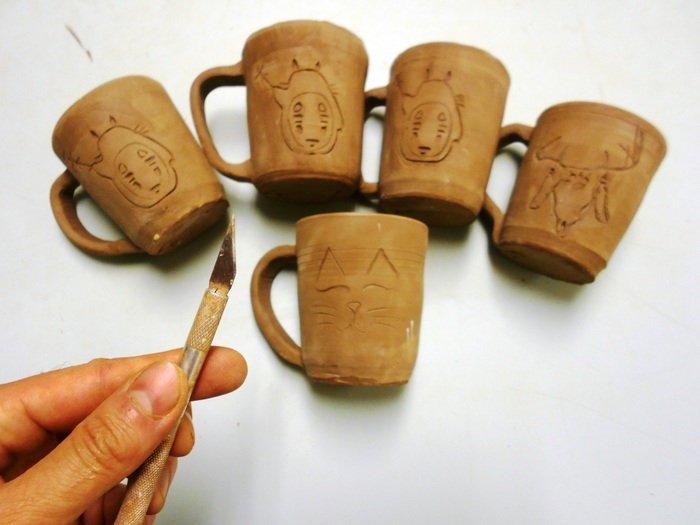 Вот и подсохла новая партия кружек из глины с берега Волги.