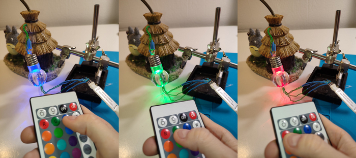 Если перепутаете ноги, то при командах от пультика будут включаться неверные цвета. Я тоже собирала пробную схему и переставляла ноги, пока не добилась чтоб все кнопки правильно задавали цвета на светодиоде.