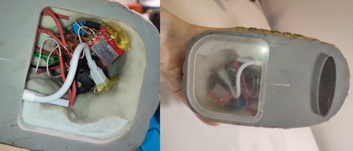По-уродски заливаем всё тремоклеем, но это важно, чтоб нигде ничего не коротнуло.
