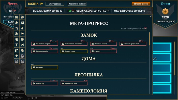 За очки чести покупаем пассивные усиления. Не сказал бы, что они мощные, но пока и не все их открыл даже. Это будет очень долгий путь.