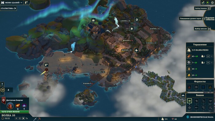 Защищаемое королевство имеет массу точек интереса, разнообразных зданий и производств. Если их строить и развивать, то это может дать ощутимые преимущества в бою.