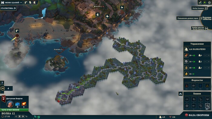 Начало нового раунда запускается расширением карты мира. Так становится всё более длинной дорога, по которой атакуют враги. Чем длиннее путь противников, тем больше на нём можно наставить башен, всё очень хорошо в этом смысле сбалансировано.