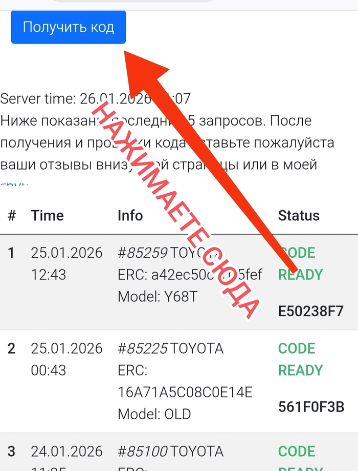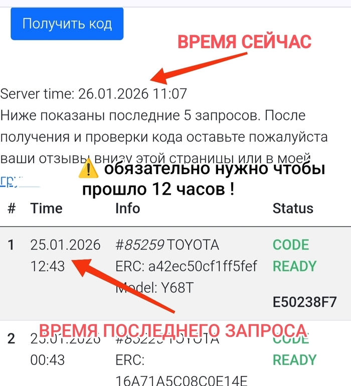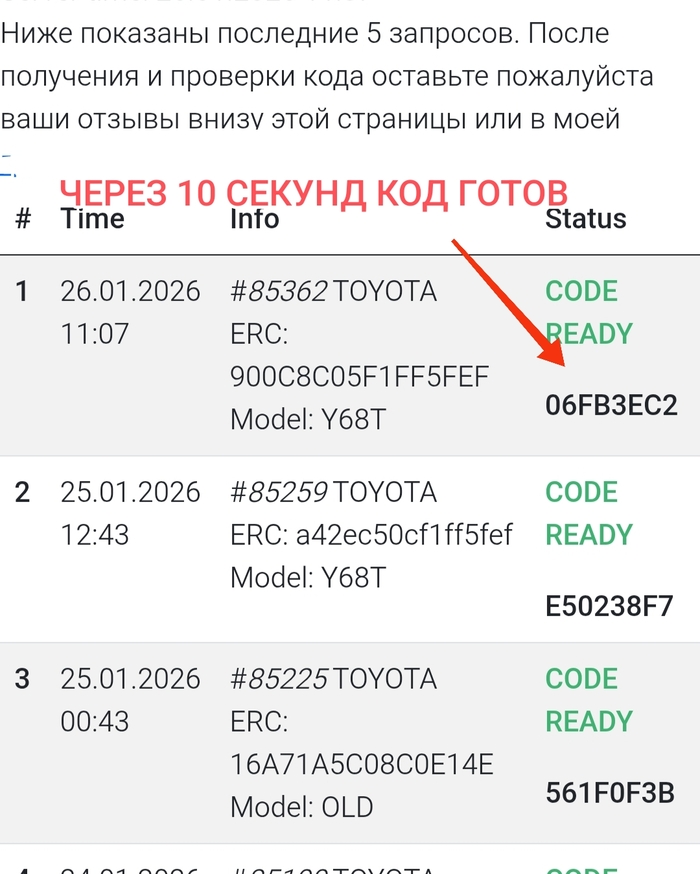 В своей статье на ЯндексДзен я уже описывал, что код я получаю через специальный калькулятор паролей для Тойота и есть лимит по количеству запросов в сутки. Так вот 2 запроса в сутки я зарезервировал под тех людей, кто хочет получить код бесплатно и готов сам во всём разбираться.