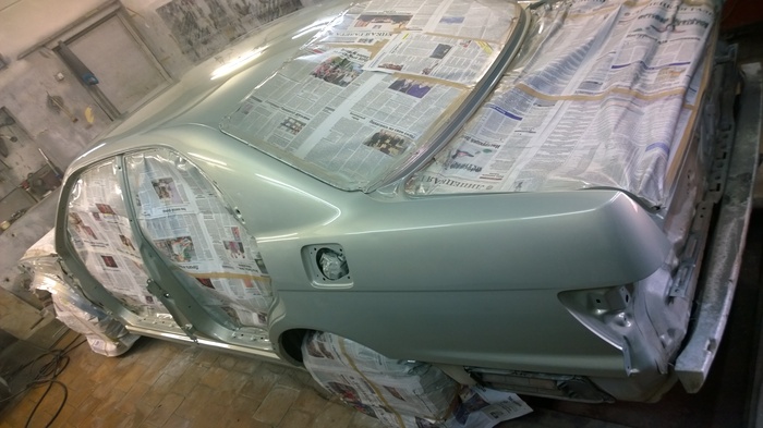 Фото сделал сразу после покраски. Даже лак не выветрился. Само собой, красили в два цвета) Капот и крышку багажника покрасили несколько раньше.