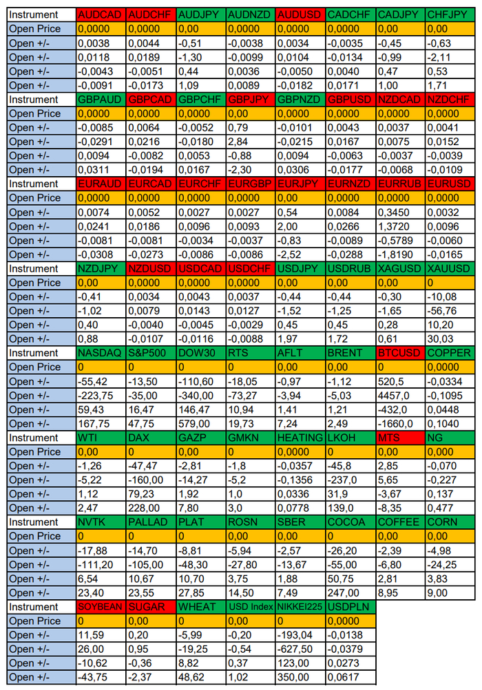 Весь перечень анализируемых активов указан ниже в общем количестве 62 инструмента. Здесь Вы найдете активы рынка Форекс, популярные активы Московской биржи, не менее популярные активы Чикагской биржи СМЕ и мажор криптовалютного сегмента - Биткоин, за которым следуют все альткоины.