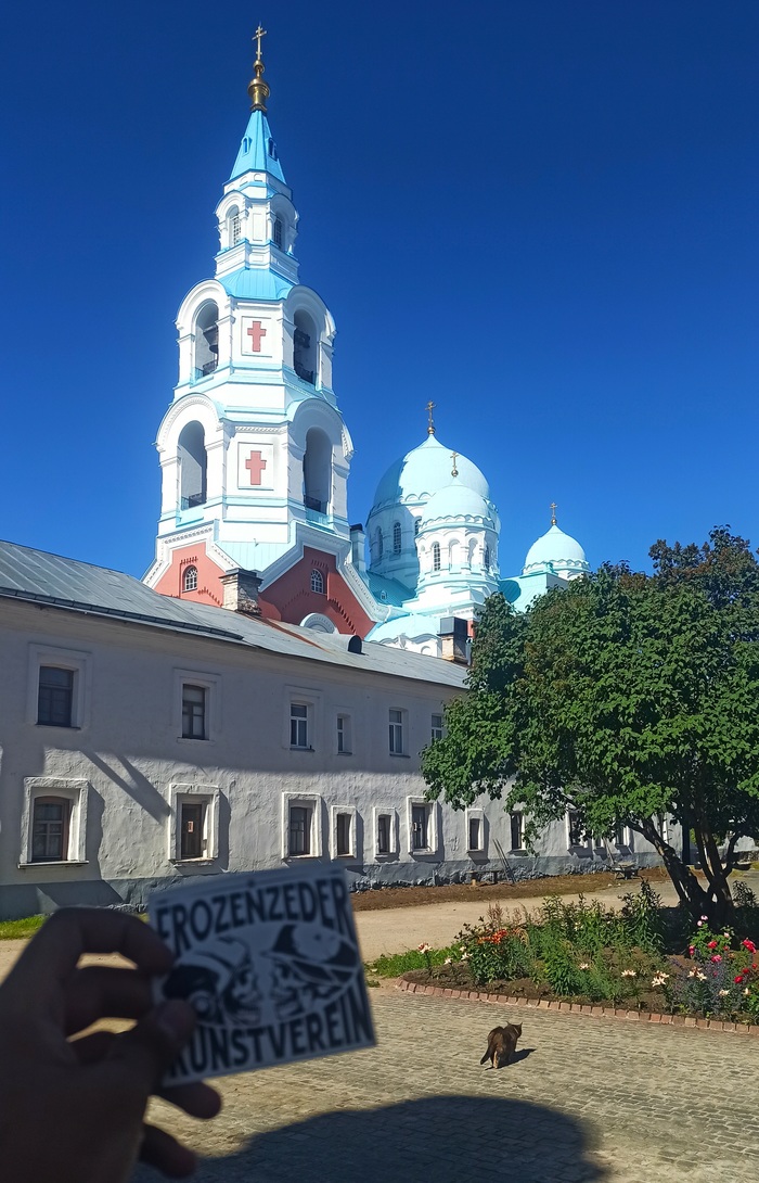 Сегодня планирую устроить день отдыха, посмотреть на остров. Три сотни километров сильно меня вымотали и нужно дать себе немного отдохнуть. Сплю подольше, на воду выхожу ближе к обеду, огибаю остров и захожу в Монастырскую бухту, на входе в которую меня встречает церковь. Подхожу к пристани, охранник говорит что тут припарковаться нельзя, спрашиваю где можно, плыву.