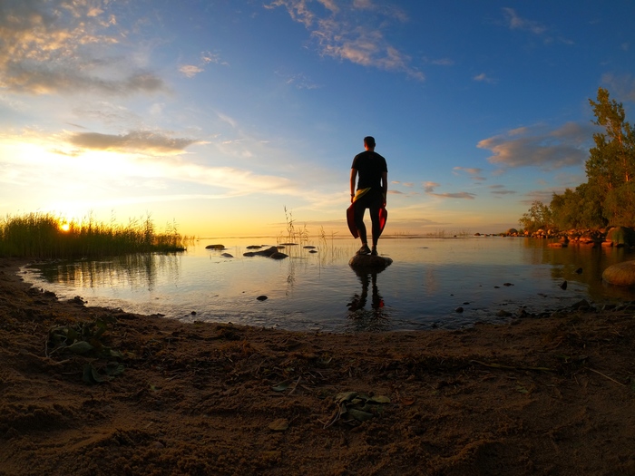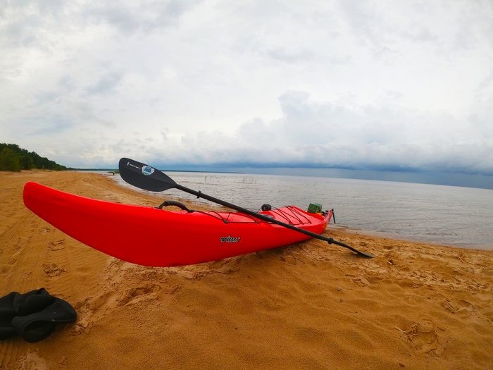 Погода пасмурная. До входа в Ладогу остаётся чуть более пятидесяти километров, нужно пройти их сегодня. На картах, в пяти километрах от меня поселение Красково, направляюсь к нему в надежде что там есть магазин. Доплыл. На деле Красково - полузаброшенная рыбацкая деревня. На пляже замечаю парня с девушкой, спрашиваю у них про магазин, мои надежды разрушены) Завтракаю гречей, израсходовав последнюю воду. Люди у которых я узнавал про магазин, спрашивают откуда и куда я плыву, мы разговорились, и они предложили мне бутылку воды, хотя я даже не просил, за что им огромное спасибо))