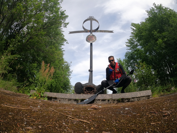 Иду набирать воду, оставляя за собой смачные грязевые следы. Выходим на улицу, опа, ещё люди в форме. По дороге до каяка меня провожают напуственной речью что сюда заплывать нельзя, и что я должен так же сообщить об этом всем своим, ну что же, сообщаю, туда плавать нельзя))