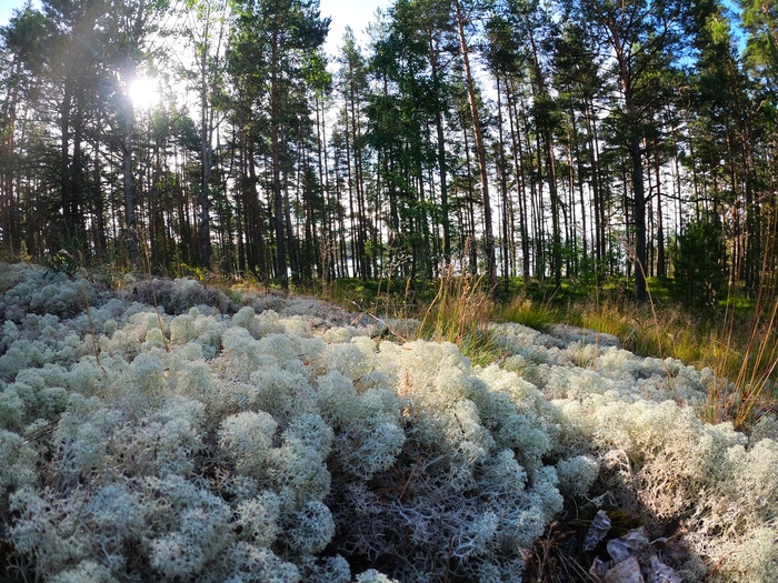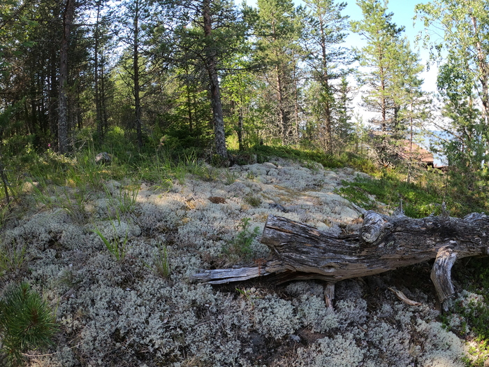В глубине, на возвышенности, среди сосен, остров покрыт мхами и лишайниками, тут другой мир. Возвращаюсь и развожу костёр, просушиваю вещи. За время моего плавания от гидрокостюма уже так себе запах))) Полоскаю его в озере, вешаю рядом с костром. Солнце зашло, падаю в спальник и закрываю глаза, завтра будет трудный день.