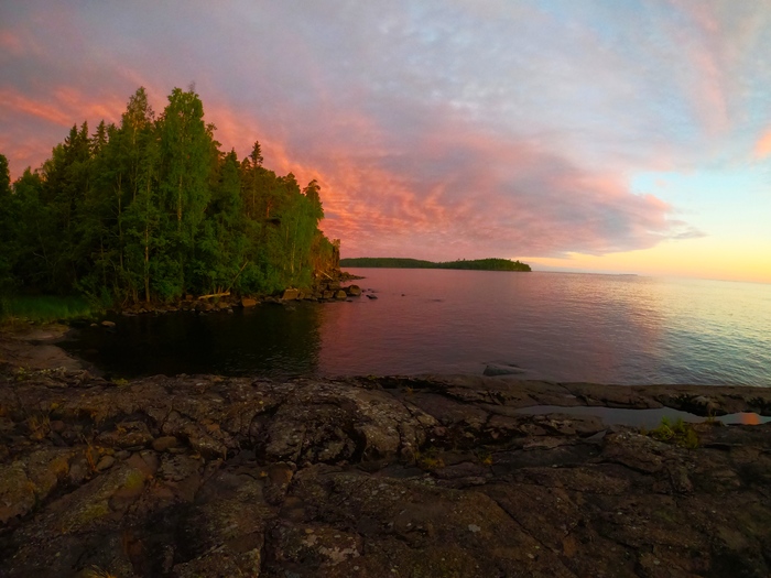 Далее начинается архипелаг Ладожские шхеры, красотища, плыву от острова к острову, лавируя меж огромных валунов, на острове Есусаарет доживает свой век старая деревянная церковь, стены покосились и едва держат крышу. Вечереет, погода меняется на встречный порывистый ветер. На ночёвку направляюсь на остров Лауватсаари, тут уже много людей, нахожу свободное место. Разложив вещи решаю пройтись осмотреться вглубь острова и натыкаюсь на бескрайние поля черники, оторваться и перестать поглощать ягоды невозможно))