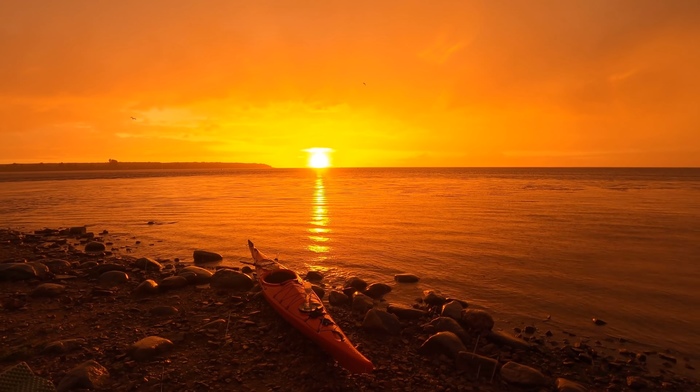 Через пол часа поднимается волна, каяк раскачивает, а вместе с ним и меня, снова чувствую что мне приходит пиздец. Только в этот раз до берега ещё часа четыре-пять. Через пару часов становится только хуже. Смотреть на воду не могу, вижу в ней только чёрно-белую массу помех. Смотрю выше, в небо, над уже различимой полоской берега на горизонте. Моргать стараюсь реже, открывать глаза становится тяжело. Борюсь с мыслями просто закрыть глаза и забить на всё, заставляю себя концентрироваться и грести. И так минута за минутой.