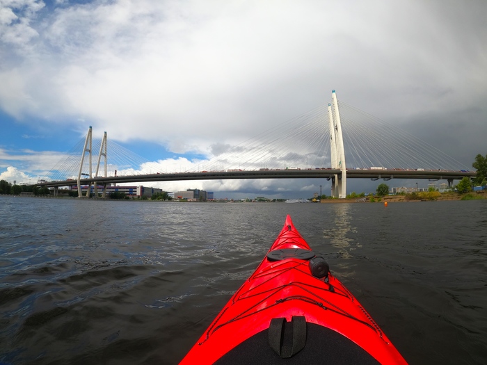 Прохожу километров 10, какой-то городок, поближе к берегу, порывом ветра меня в две секунды сносит на центр Невы, огромные волны подхватывают каяк, давлю на педаль руля, гребу правым бортом, бесполезно, скорость бешеная, меня тащит волной и начинает разворачивать, понимаю что оверкиль неизбежен, гребу, и в какой-то самый последний момент, когда я уже боком к волне на 90 градусов она заканчивается, чудо, перевожу дух, продолжаю путь. Ветер дичает, разгоняет волны против течения реки, на берегу с треском переломилось дерево. Переваливаю на другой берег, в центре волны придают скорости, но держаться на них очень сложно, волны переходят в треугольные, точнее в пирамидальные, как огромные пакетики чая, только вокруг, как будто из неоткуда, каяк не успевая соскочить с одной, тут же меняет курс наскакивая на другую, ну всё, теперь точно гудбай, адреналин вышибает, гребу то одной то другой стороной, ловлю равновесие на грани, не верю, но волны закончились.