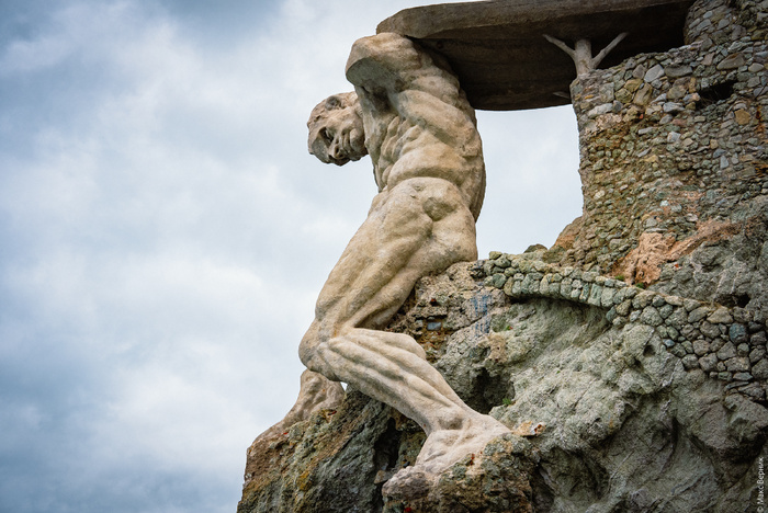 Потеряв руки, а с ними трезубец, раковину на плечах, да и саму виллу, суровый молчаливый Нептун, изо всех сил сжав между ногами свою родину, согнувшись, держит на своих плечах призрак давно исчезнувшего великолепия, заменённый в нашей современности откровенной архитектурной насмешкой, бетонным язычком, который совершенно не свойственен итальянцам, людям, в чьих сердцах много поколений горит огонёк красоты эпохи Возрождения.