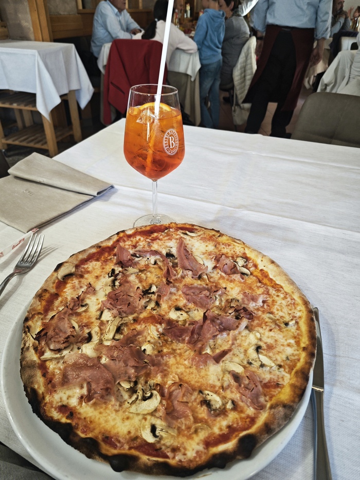 А после я приехала в Италию. Немного погуляла, попыталась попасть в местный собор, он был закрыт, перестала делать вид что я тут культурно просвещаюсь и пошла за пиццей с аперолем. Боже, это была наверное одна из самых вкусных пицц! Не зря там было много местных.