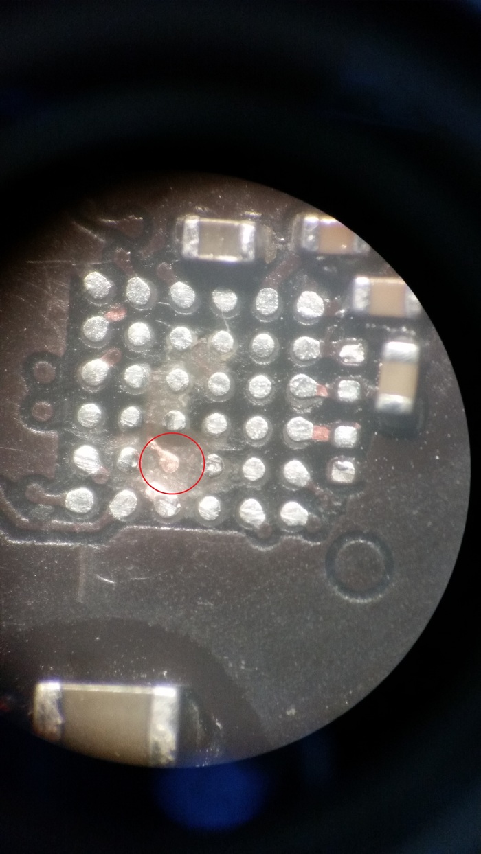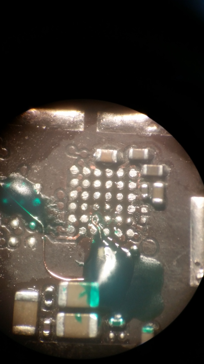Ну нет одного пятачка, ничего страшного, но вот что странно, начал его искать и не нашел, вообще даже признаков, начав ковыряться в текстолите только гарики выковыривались, было принято простое решение - взять донора и посмотреть как идет дорожка.
