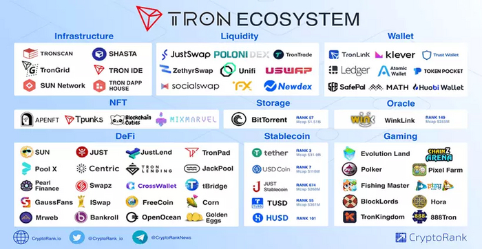 Наилучшим образом у TRON дела обстоят в DeFi-индустрии, однако маловероятно, что платформа сможет составить полноценную конкуренцию Ethereum и BNB Chain с их огромными экосистемами. К тому же, на данный момент сложно спрогнозировать будущее стейблкоина USDD, который на данный момент является главным драйвером роста DeFi-протоколов на TRON.