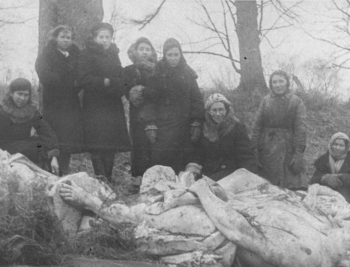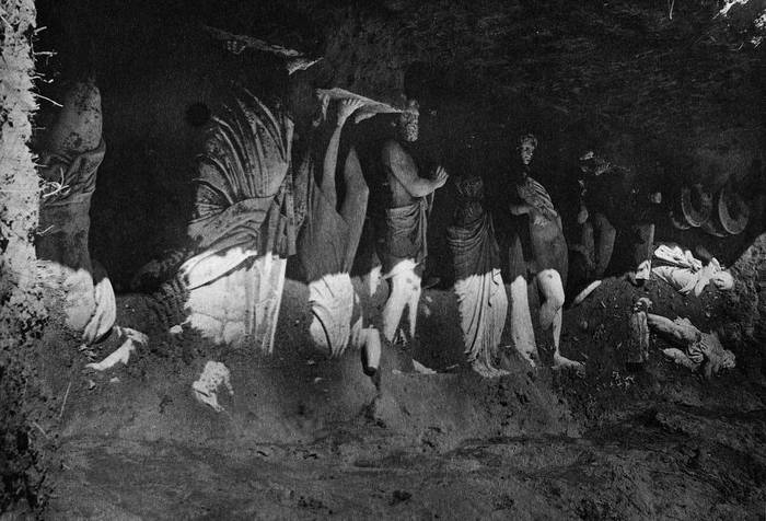 На фото прекрасно видно этап расчистки, вскрытия захоронений...