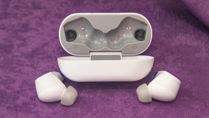 В комплекте поставки, помимо самих наушников и кейса, имеется две пары сменных амбушюр, кабель USB-C для зарядки, документация и мешочек для хранения и переноски.