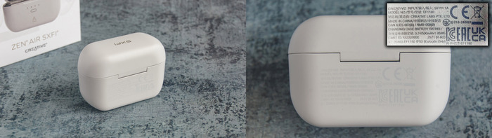 Кейс Zen Air Pro имеет привычную форму без острых углов. Что касается цвета, то белым наушникам – белый кейс. Логично.