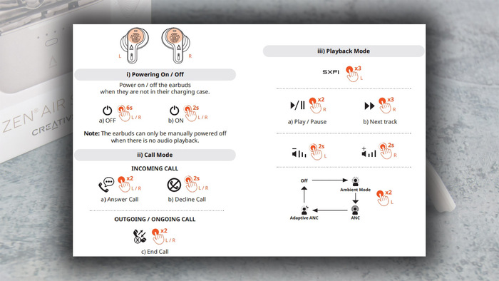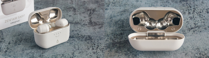 Наушники Creative Zen Air SXFI удобно сидят в ушах. Довольно плотно и не норовят выскочить. Автоматическое сопряжение активируется при открытии кейса, а для ручного подключения достаточно поместить наушники в кейс и удерживать кнопку в течение 3 секунд.