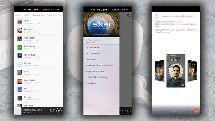 Для Creative Zen Air SXFI можно использовать и другое приложение – SXFI App. Оно представляет собой скорее медиаплеер с возможностью составить карту ушей и головы для активации Super X-Fi – фирменной технологии, которая, учитывает анатомические особенности слушателя и добавляет реалистичности звуку и расширяет звуковую сцену основываясь на