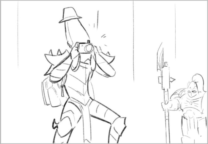 Космодесантник хаоса приклеил космодесантнику листок на спину.