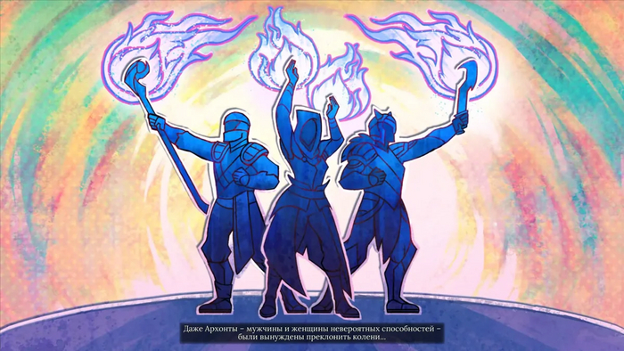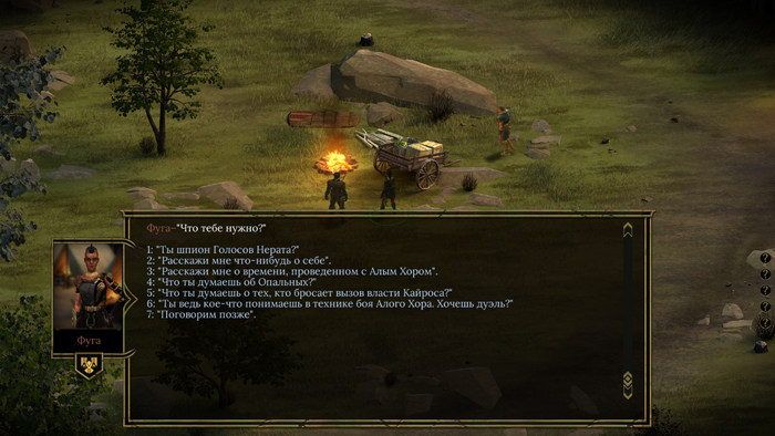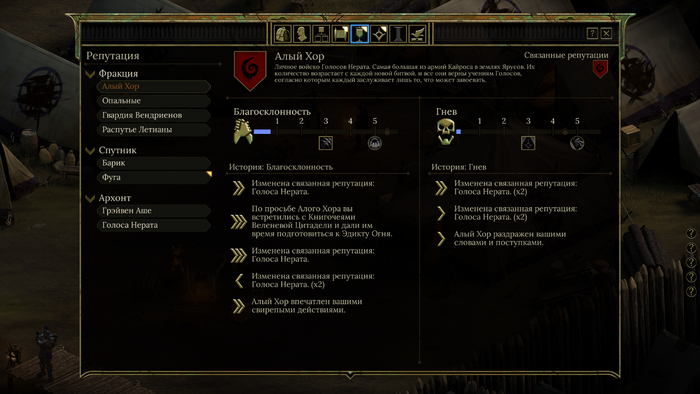 Главный герой - вершитель судеб, этакий следователь, прокурор и отряд быстрого реагирования во едином лице. Да, строго говоря, наш герой - очень брутальный юрист и спецуполномоченный центра в недавно завоеванной зоне. Должность вершителя, прямо скажем, не синекура. Завоевание случилось совсем недавно, поэтому край, где мы высаживаемся, кишит повстанцами всех мастей и расцветок, повсюду послевоенный хаос. Кстати, наш протагонист самым активным образом принимал участие в завоевании. В качестве пролога мы проходим текстовый квест на тему того, а чем наш герой был занят до начала, собственно, событий игры. Можно этот акт пропустить, но не советую: очень погружающе, а персонажи потом будут тебе всячески припоминать - "Помнишь, брат, как давили эльфийскую мразь" или наоборот, "А, это ты та гнида, которая ребят подставила". Но мало того, отдельная проблема, одна из основных в игре - это противостояние, собственно, двух армий, которыми наш любимый вождь и учитель Кайрос завоевывал эти земли. С одной стороны - легион Опальных, такие идеальные эсэсовцы, которые решают проблемы упорядоченным четким геноцидом. С другой - безумный Алый хор, орда, берущая числом и напором чаще, чем умением, и льющая свою кровь так же весело, как чужую - мы все сдохнем, и это хорошо, жизнь боль, какой восторг. Во главе Опальных стоит Архонт войны, слуга царю, отец солдатам, чье благословение мистическим образом дает его бойцам невероятную живучесть - но каждую смерть своих людей он переживает лично; хористов же возглавляет Архонт тайн - полусумасшедший спецслужбист, пожирающий души и через это получающий знания пожранных; едкий и циничный интеллектуал, руководящий посредством управляемого беспредела. По дороге мы встретим еще нескольких архонтов - каждый наделен какой-то грандиозной способностью, как и правящий ими Кайрос, и у Кайроса это не "кастовать файерболл", это специальные эдикты, которые, например, превращают целую область в зону непрекращающегося пожара или землетрясения, а у архонтов это могучие мистические силы, отвечающие каким-то аспектам личности.
