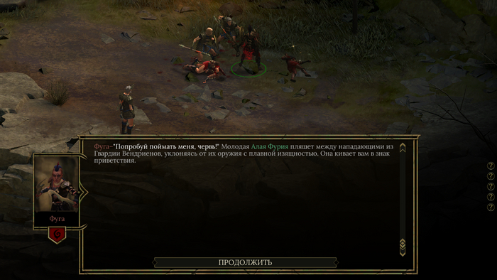 Фуга. Отмороженная воительница-сопартиец. Жесткая, конкретная баба, в диалогах даже не пытайтесь играть в дипломатичность, говорите как есть.