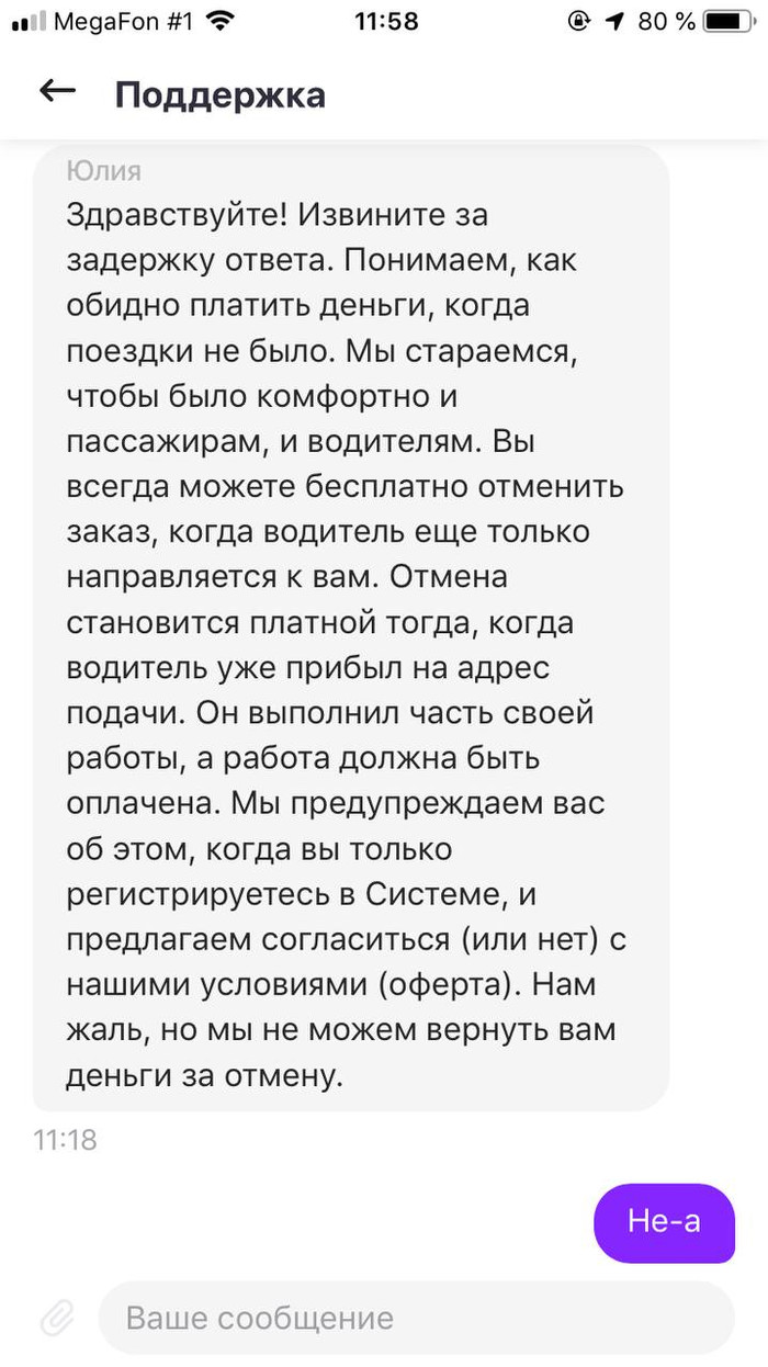 Ладно, возможно нужно действительно чуть больше времени. Возможно у водителя выходные или он не видит сообщений и ситуация разрешится в течении пары дней - подумали мы и не стали портить себе настроение в поездке, возвращаясь ежедневно к этому вопросу.