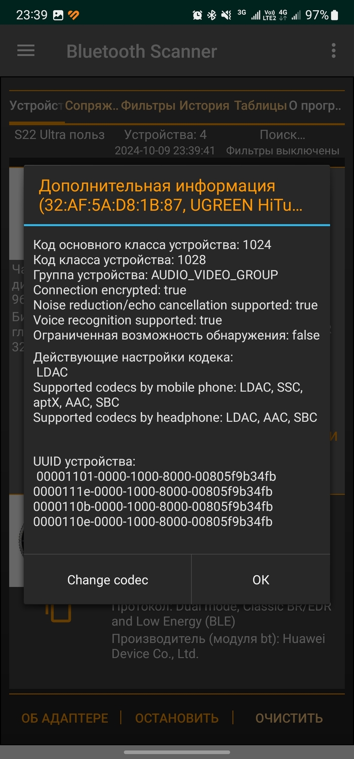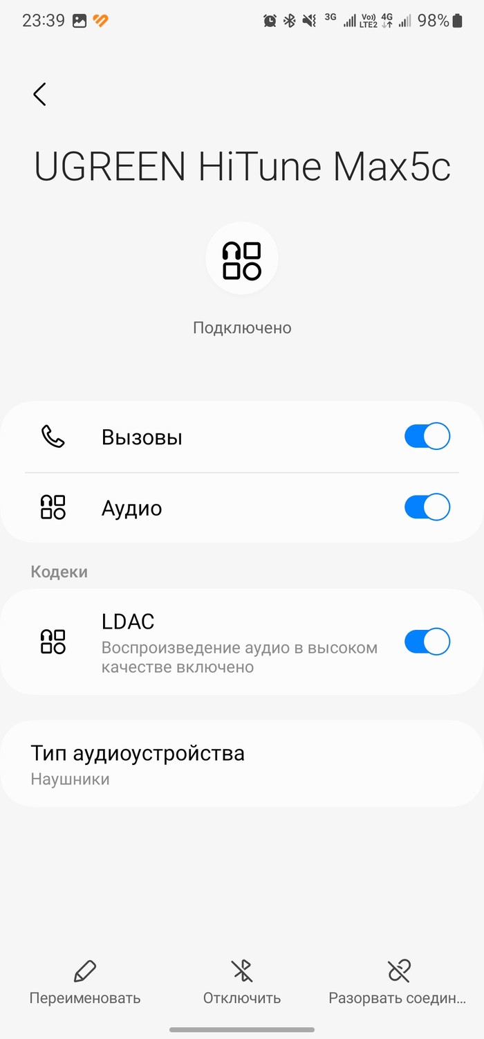 Некоторое время пользовался наушниками и не знал всех деталей, в частности, в приложении можно активировать режим LDAC (по умолчанию установлен кодек AAC, видимо из соображений энергосбережения). Скачиваем приложение Ugreen Home (в инструкции есть QR-код), привязываем наушники, настраиваем.