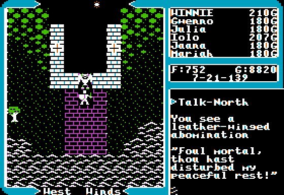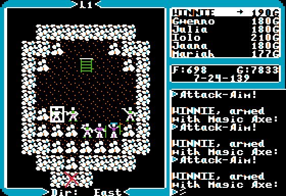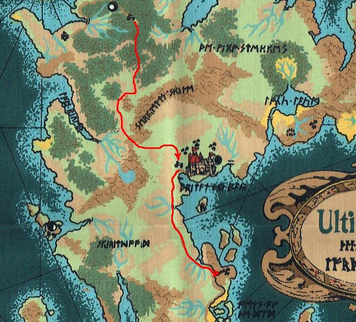 Как и во всех предыдущих частях Ultima, вначале вы оказываетесь наедине с огромным миром и без каких-либо особых указаний на то, куда направиться и что делать дальше. Сперва вы просто тупо бродите по лесам, не соображая, где вы, и какого хрена ничего не видно вокруг. Временами ваша команда натыкается на монстров и дерётся с ними, получая ранения, но добывая таким образом деньги. Со временем у них кончается еда, и персонажи умирают от голода. Потом вы постепенно разбираетесь, что к чему, находите дороги и города, находите где покупать еду. После этого наступает осознание, что еда стоит бешеных денег, а жрётся за два дня. У персонажей кончаются деньги, они перестают покупать еду и умирают от голода.